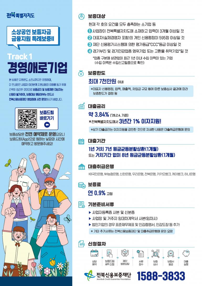 [전북신용보증재단] 소상공인 보듬자금 금융지원 특례보증 Track 1 경영애로기업(2/11시행)
