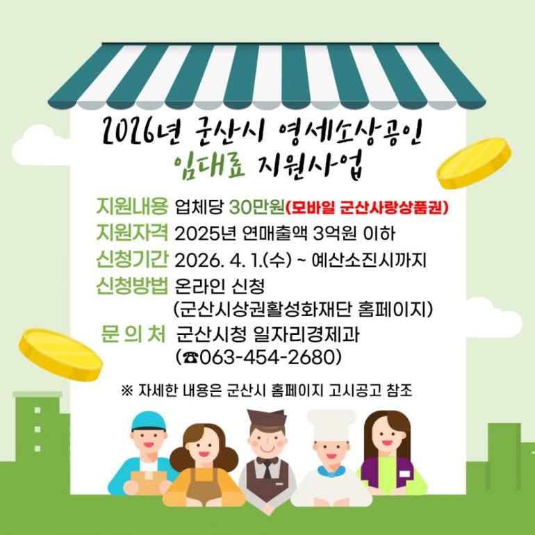 2026년 군산시 영세 소상공인 임대료 지원사업(신청4/1~)