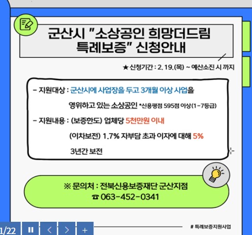 | 글 제 목 | 군산시 250억 특례보증 본격 시행 |