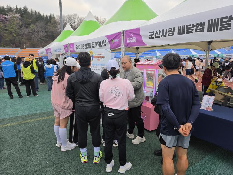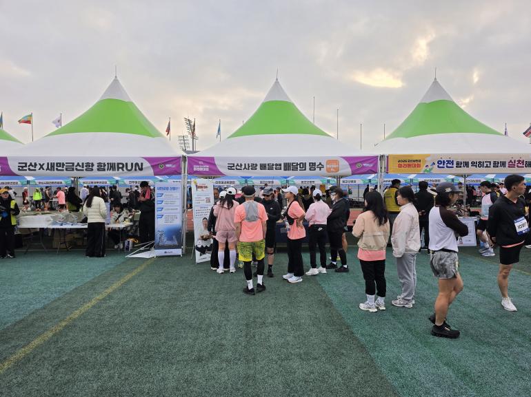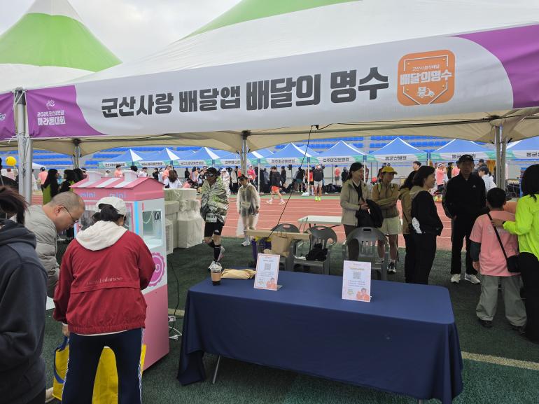 2026 군산 새만금 마라톤 대회 중 '배달의명수' 홍보부스 운영